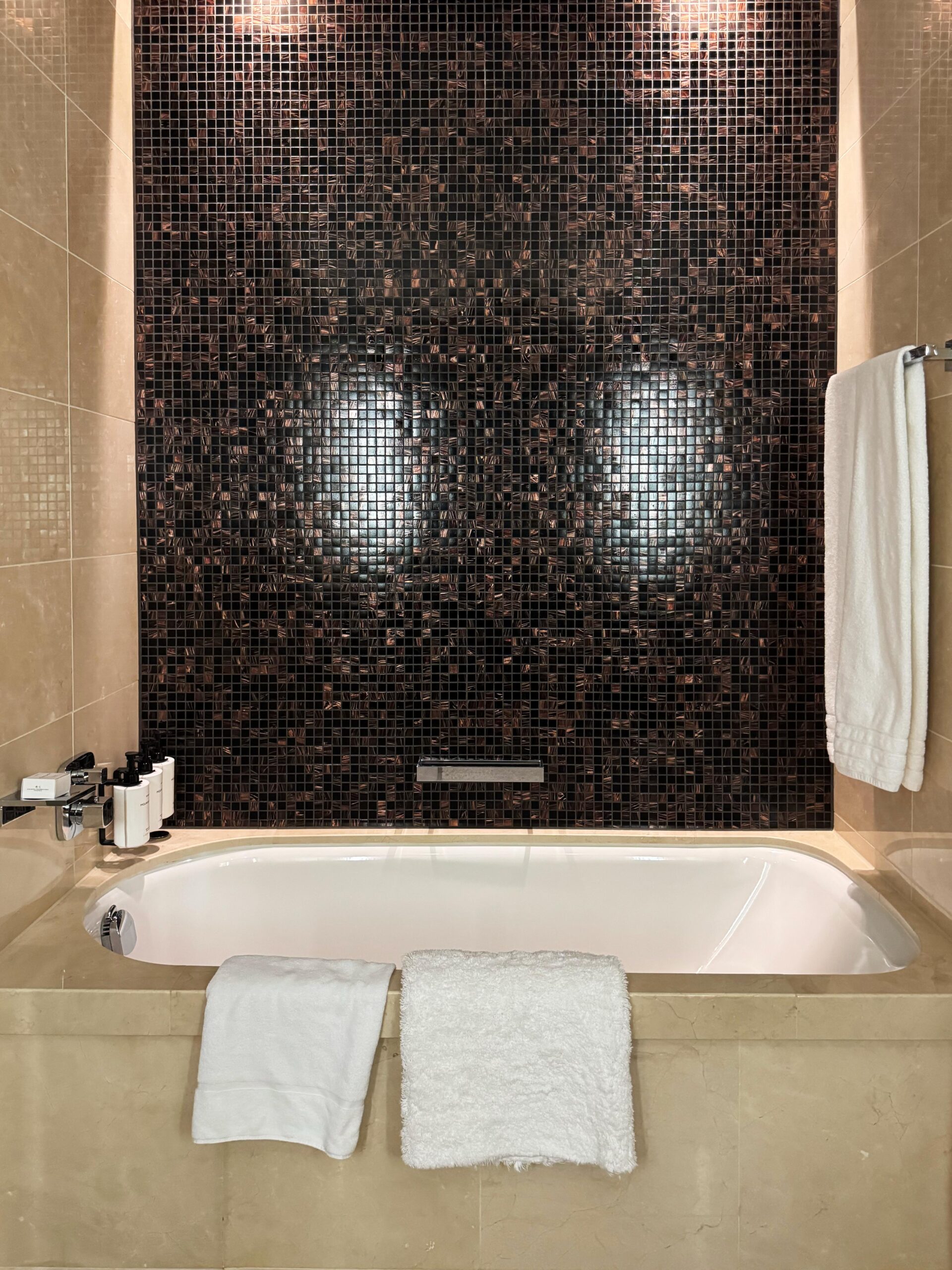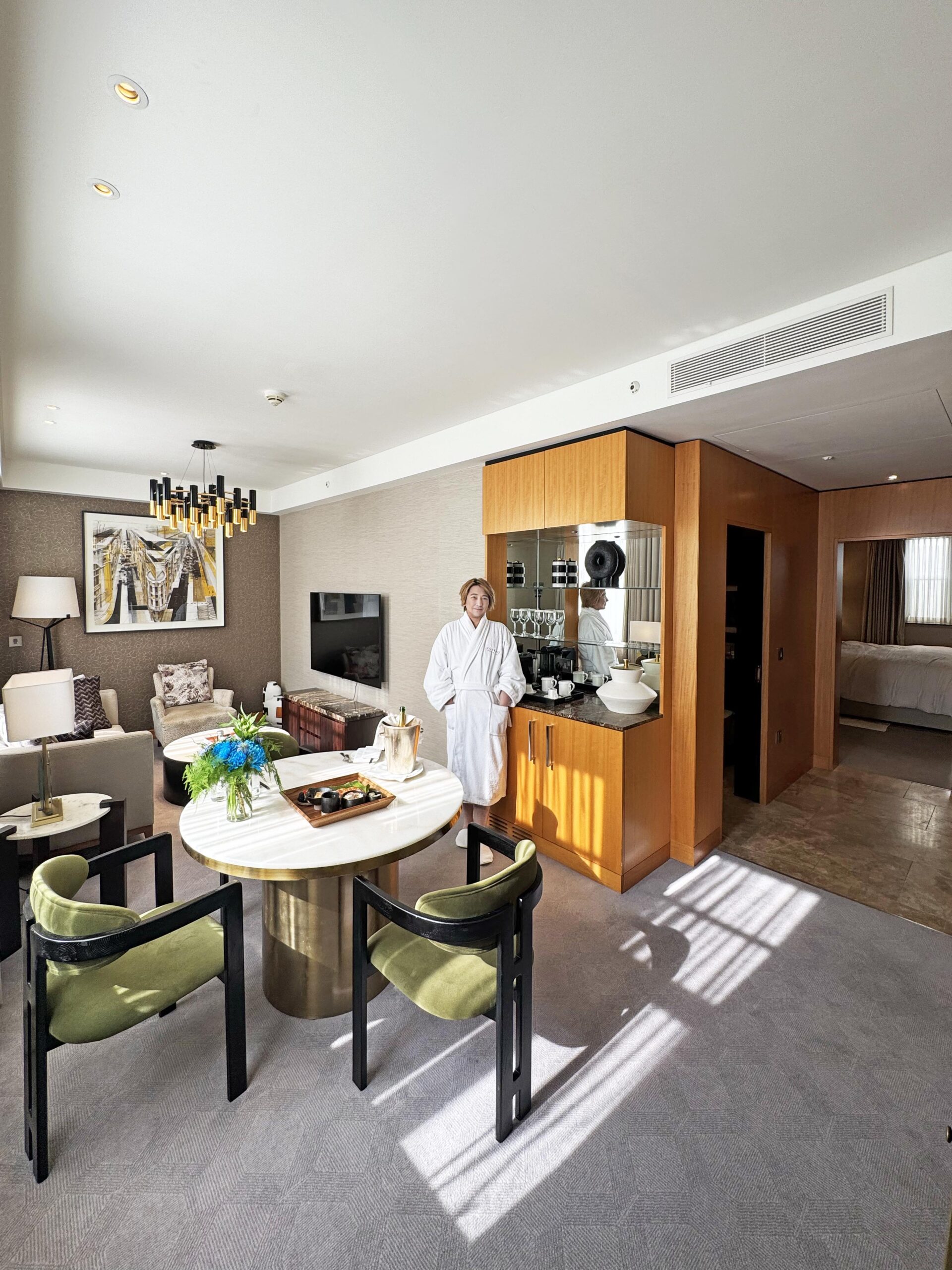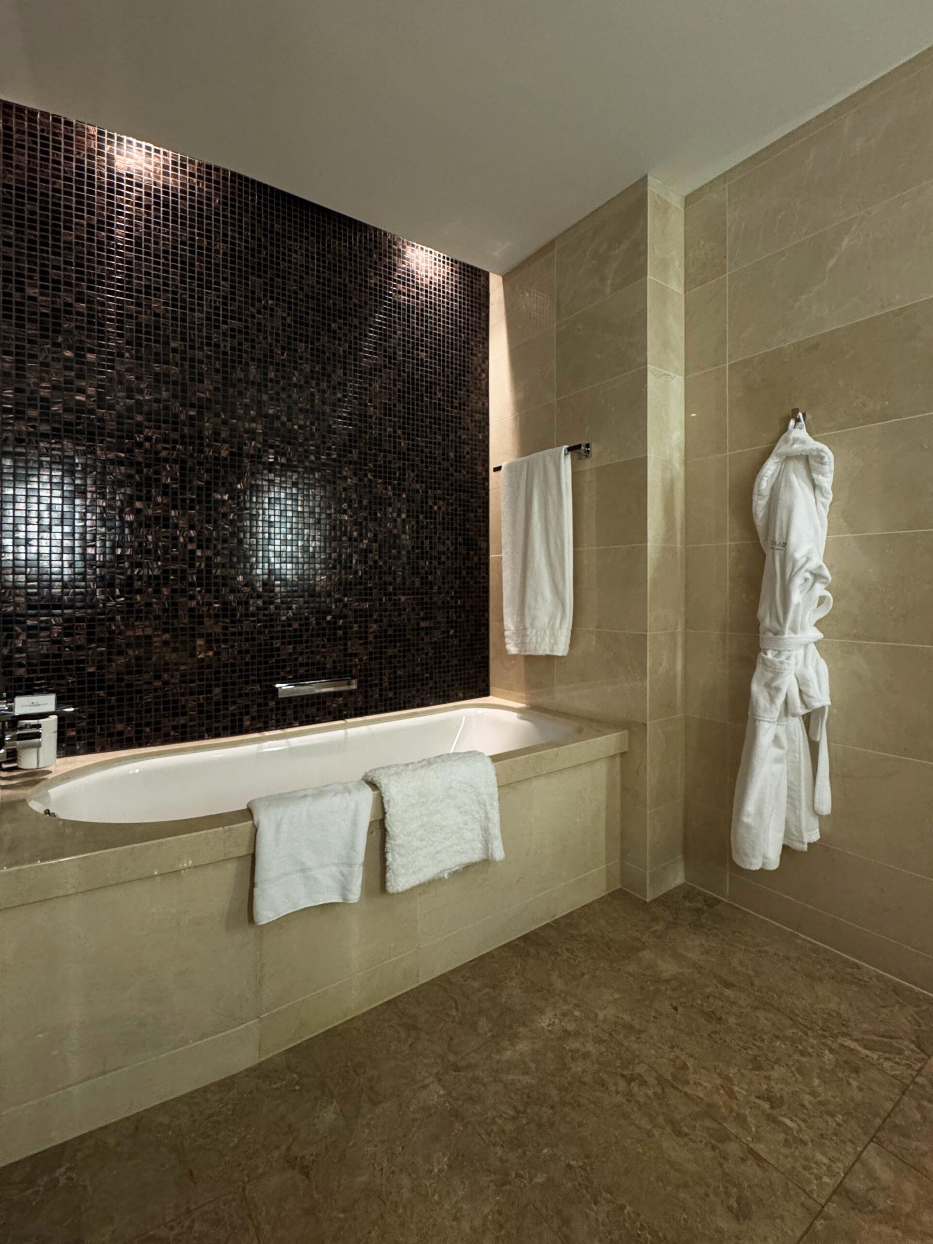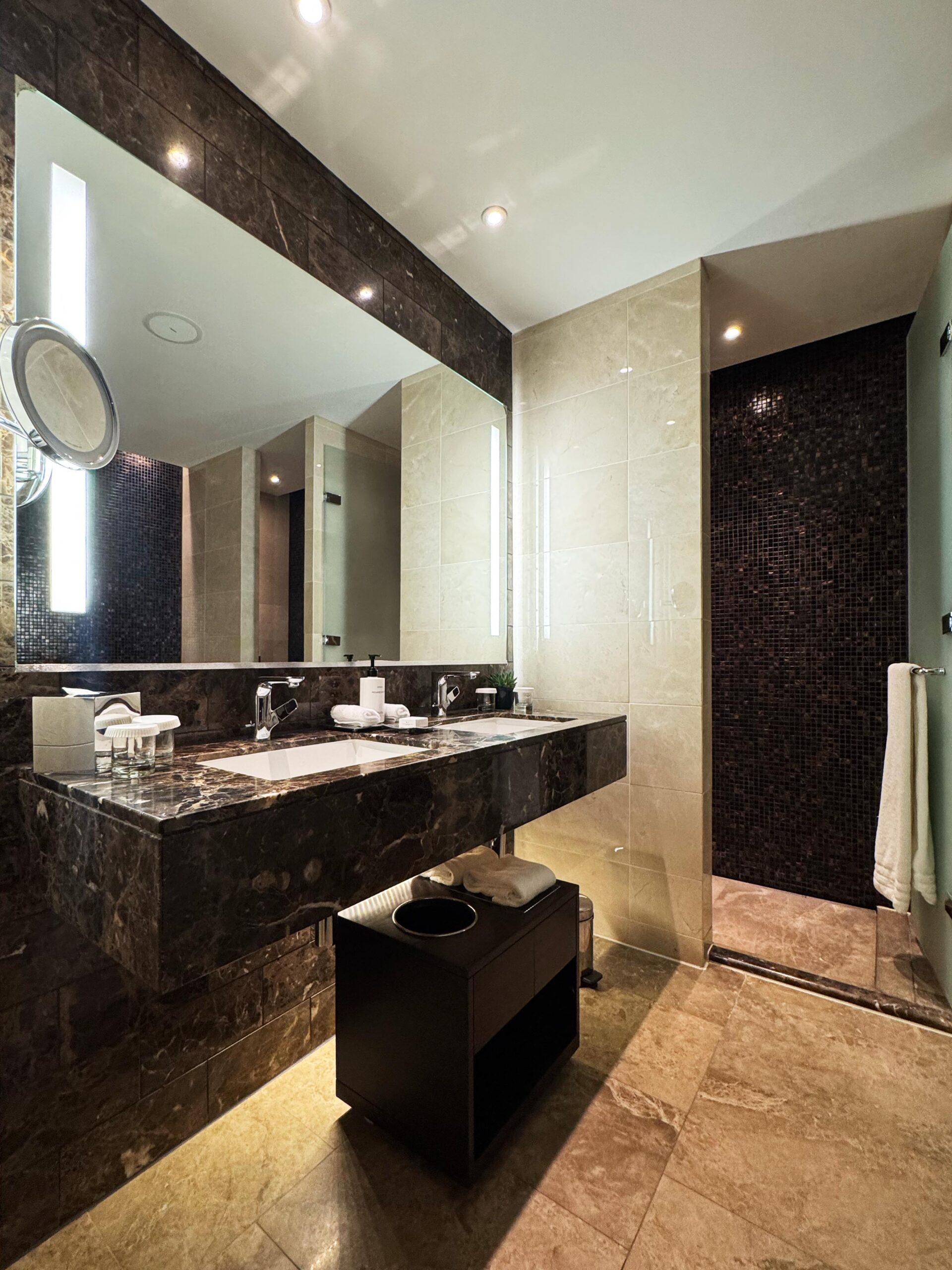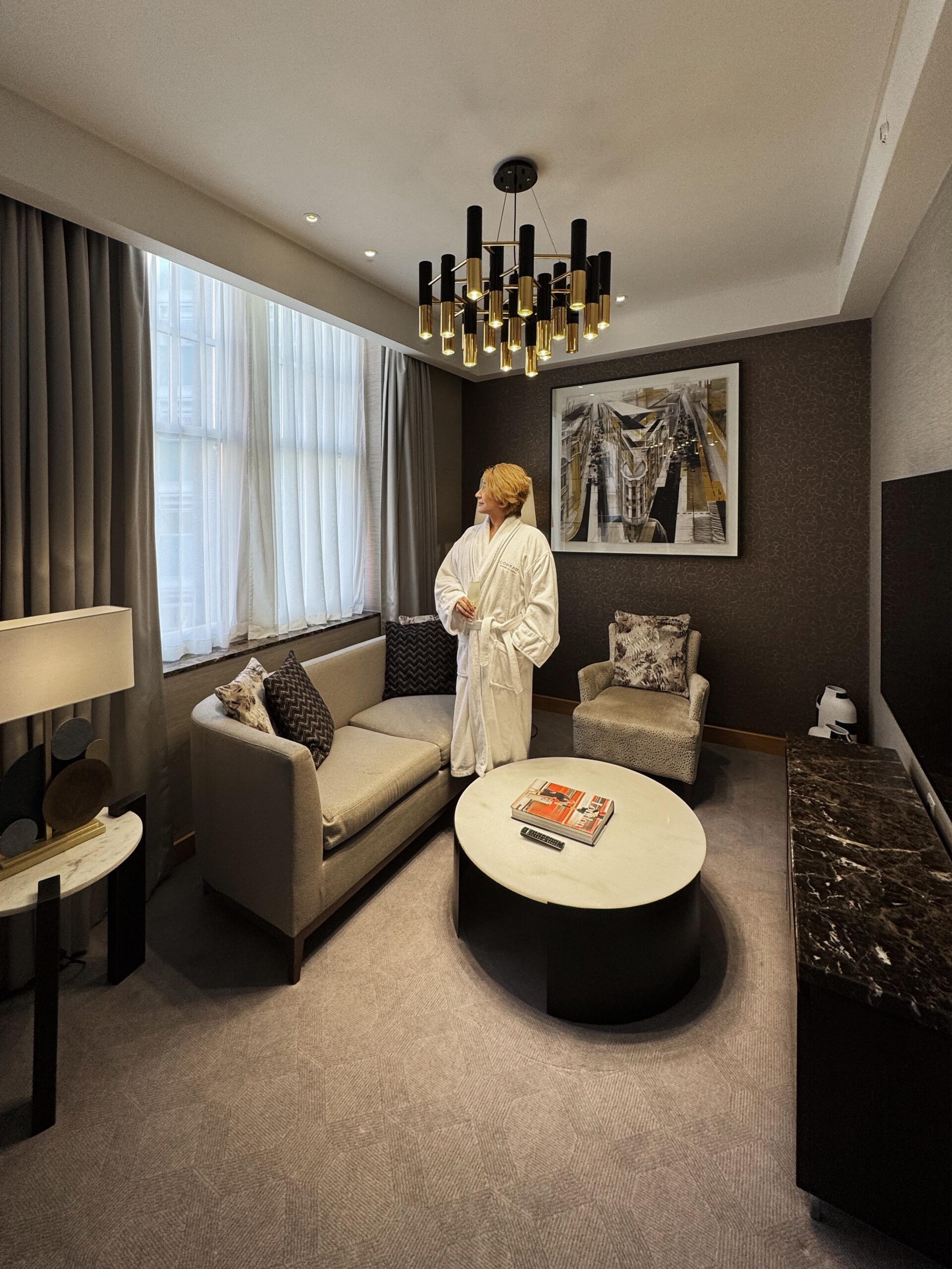 Celebrating The King’s official birthday was truly special from the luxurious comfort of Conrad London St. James! My stay in the One Bedroom Deluxe Suite with Lounge Access was pure indulgence. This unique 58 sq. m. suite offered stylish accommodations with a separate lounge and dining area, perfect for entertaining. The large master bathroom, featuring elegant mosaic-style, double vanity, a spacious rain shower, and a large bathtub, was exceptional.
