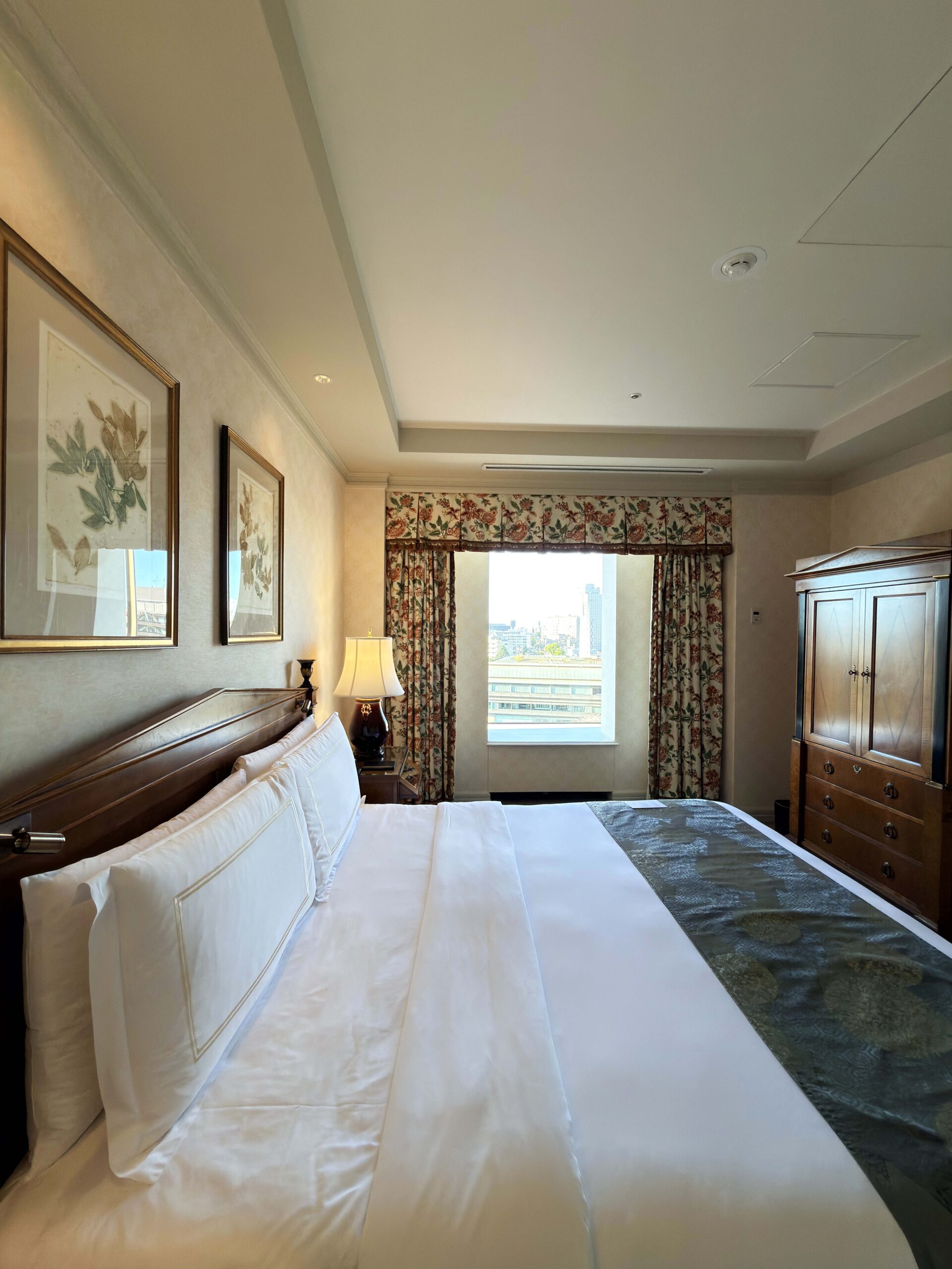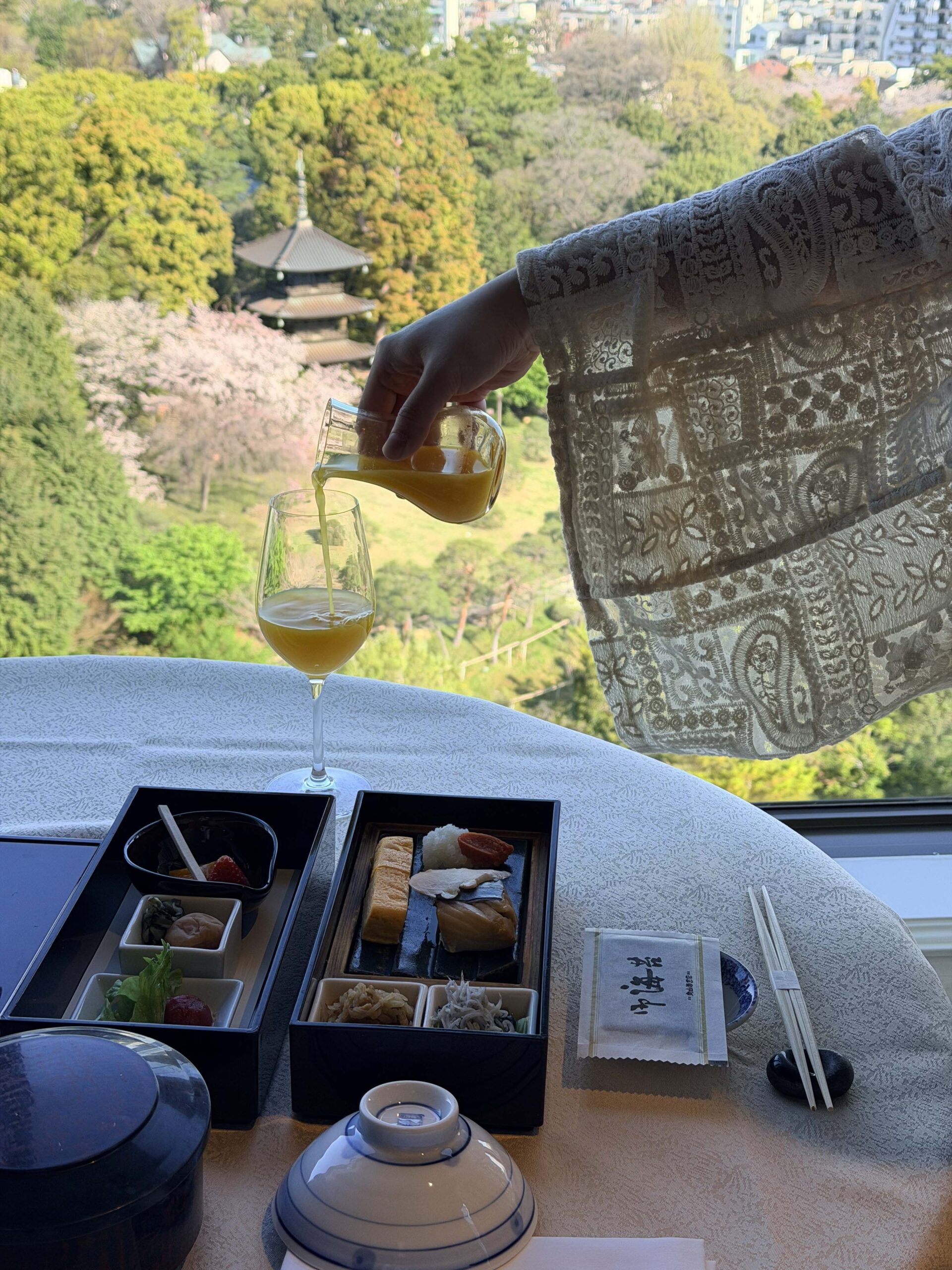 Once the check-in formalities were seamlessly completed, I felt no rush to head to my suite. It was the perfect hour for tea time, and the lounge was bathed in the soft spring light. From my seat, I had a breathtaking view of the ancient Three-Story Pagoda framed by blooming cherry blossoms. The spread was a delight: savoiry canapés, delicate sandwiches, and warm quiches sat alongside seasonal Danish pastries generously filled with fresh fruit. To finish, an array of petit gâteaux, cakes, and jellies provided a sweet, colourful brightness to an already perfect afternoon.