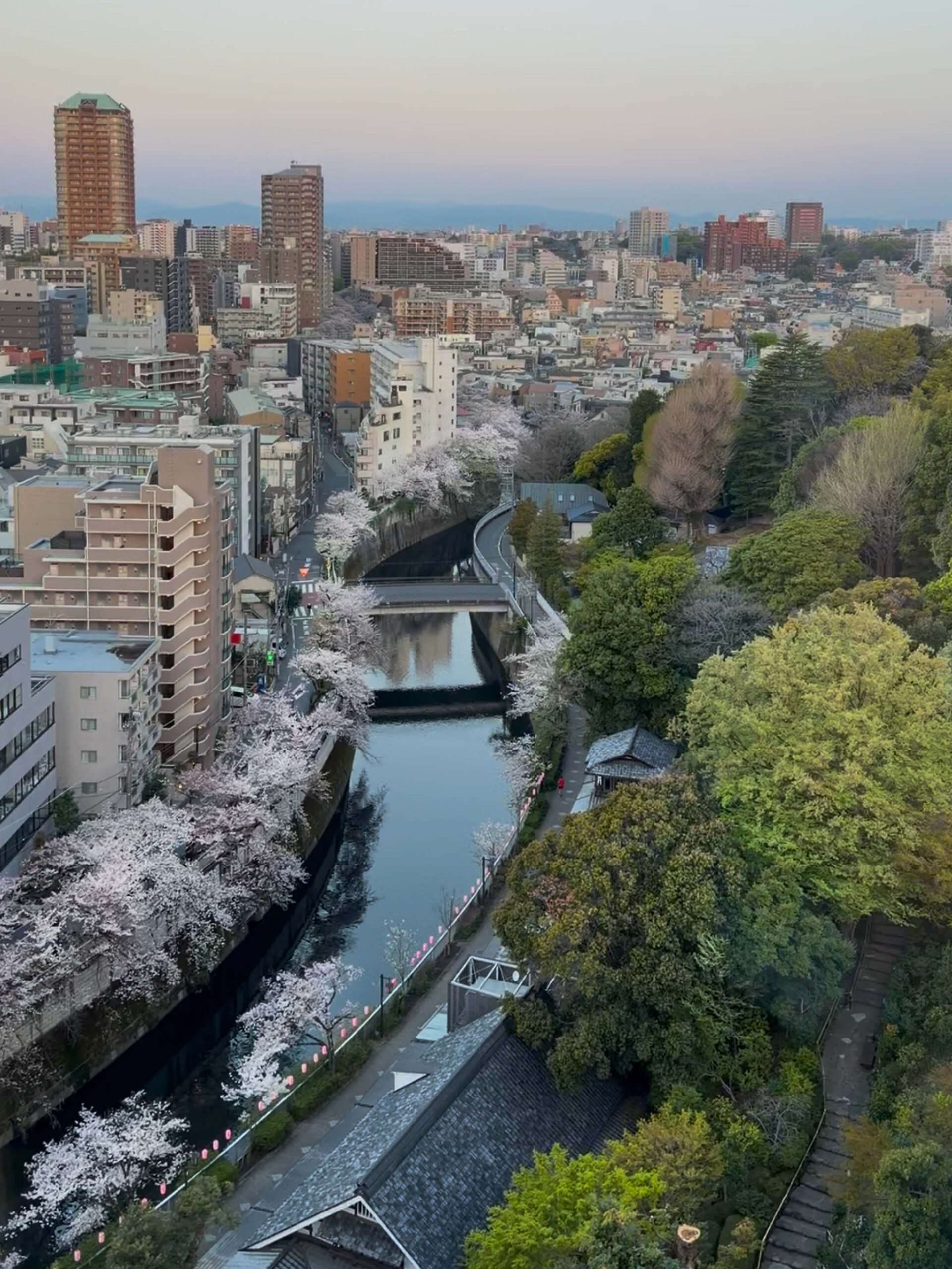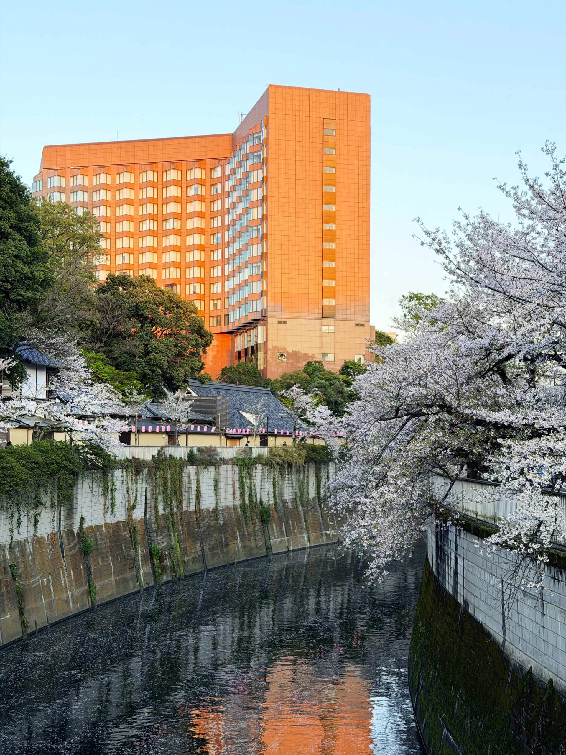 Golden hour under the Sakura at Hotel Chinzanso Tokyo is pure magic. As the sun began its descent, I stepped outside for a scenic stroll toward the famous two-kilometer cherry blossom alley along the Kanda-gawa River, located just moments from the hotel gates. It is the quintessential setting for a spring evening in Tokyo. I watched the sky transition into soft, dusty shades of pink that mirrored the heavy clusters of petals above. The warm glow of the setting sun hitting the blooms created an ethereal, glowing atmosphere—a peaceful, fleeting moment that defines the beauty of the Hanami season.