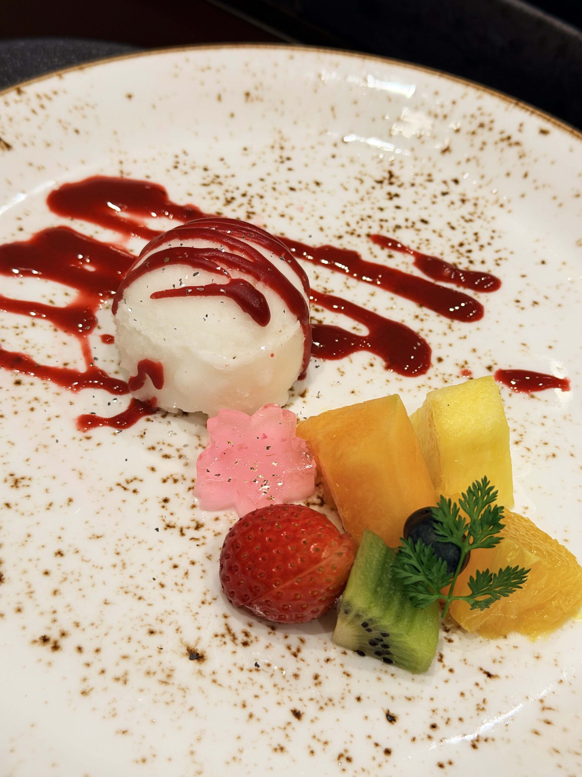 For dessert, a refreshing seasonal ice cream and fresh fruits provided the perfect final note.