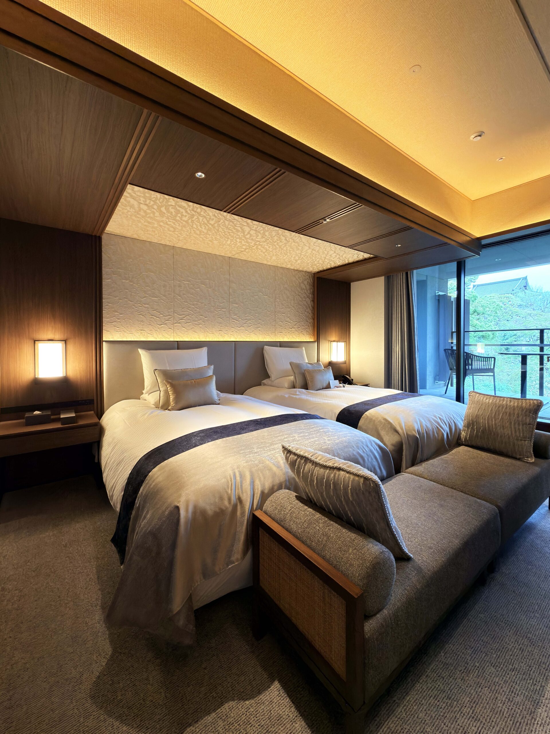 I was instantly mesmerised by the ‘Garden of Springs,’ a landscape that seems to breathe with the season. The hotel’s unique location within the precincts of the Okazaki Betsuin Temple allows for a rare, seamless connection between the property and the sacred, natural beauty of the temple grounds. This spiritual proximity is felt in the lobby and dining areas, where the greenery feels like an extension of the interior. A highlight of my arrival was the warm welcome from General Manager Goshi Kamata, whose genuine kindness set a hospitable tone for the entire stay.