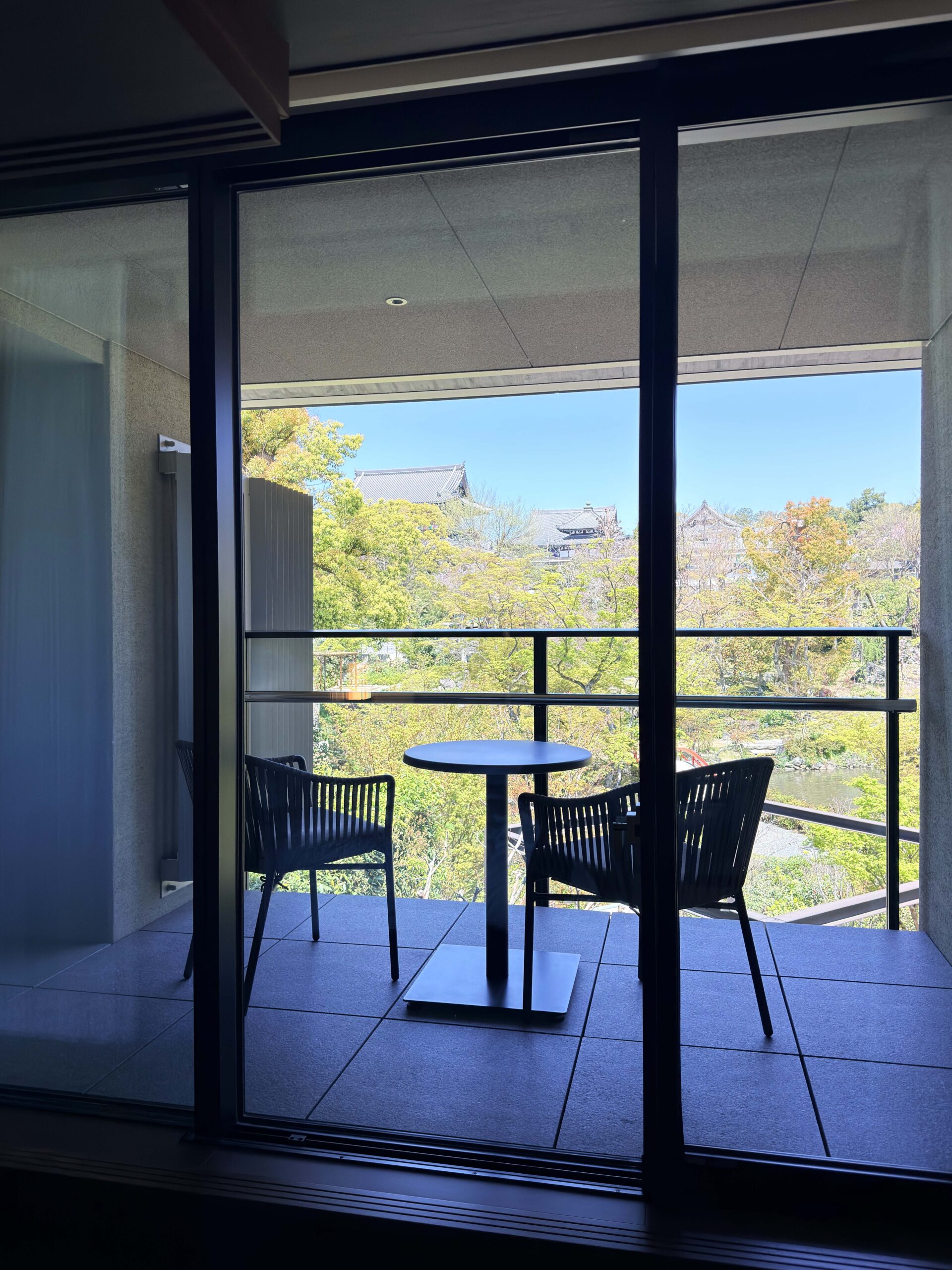 The true magic of the Bettei Suite lies in its North-facing private balcony. Facing North, it offers an intimate view of the Higashi Honganji Okazaki Betsuin Temple, with the iconic gate of Konkai Komyoji Temple standing proudly in the distance—a quintessentially Kyoto silhouette.