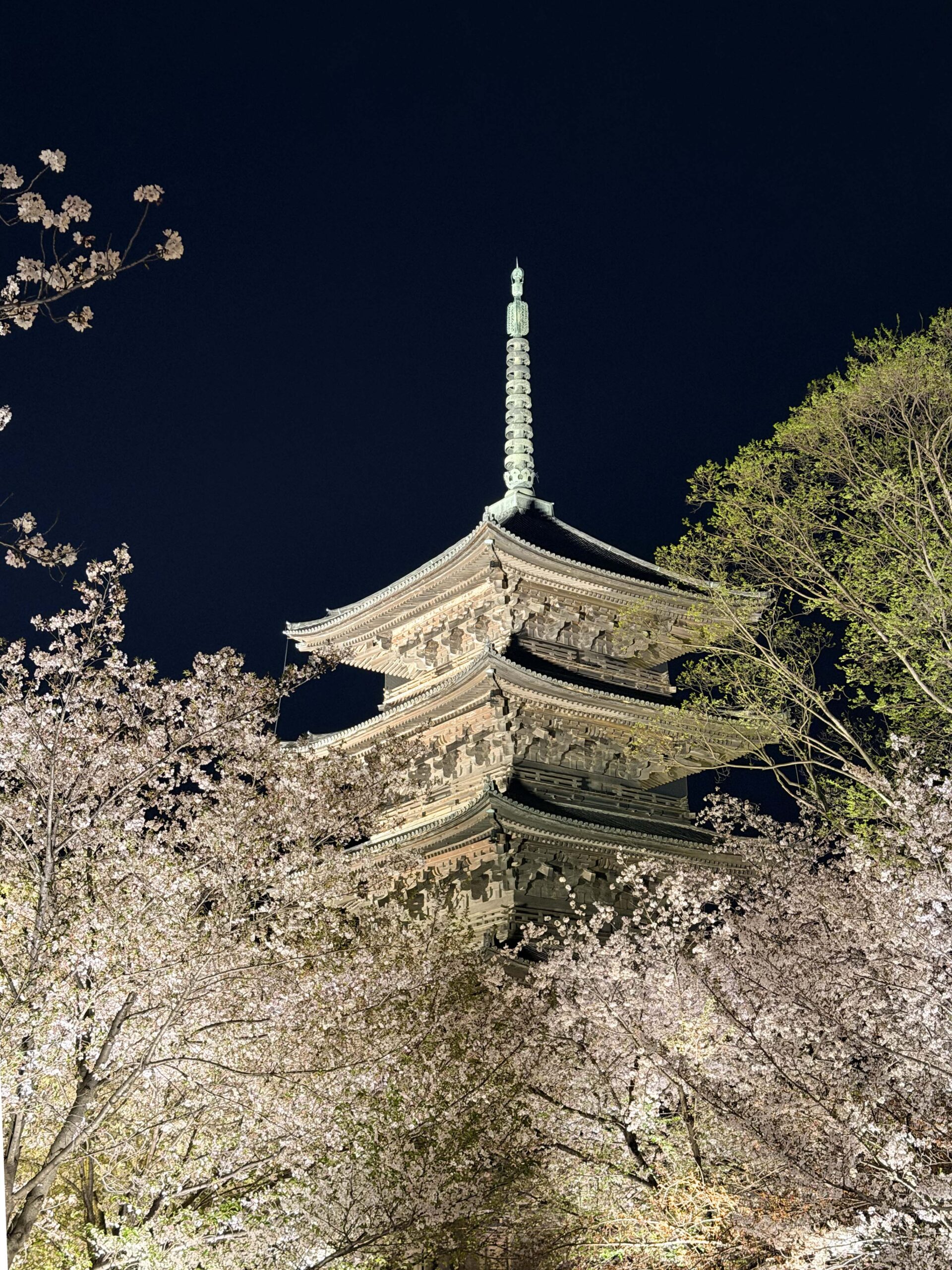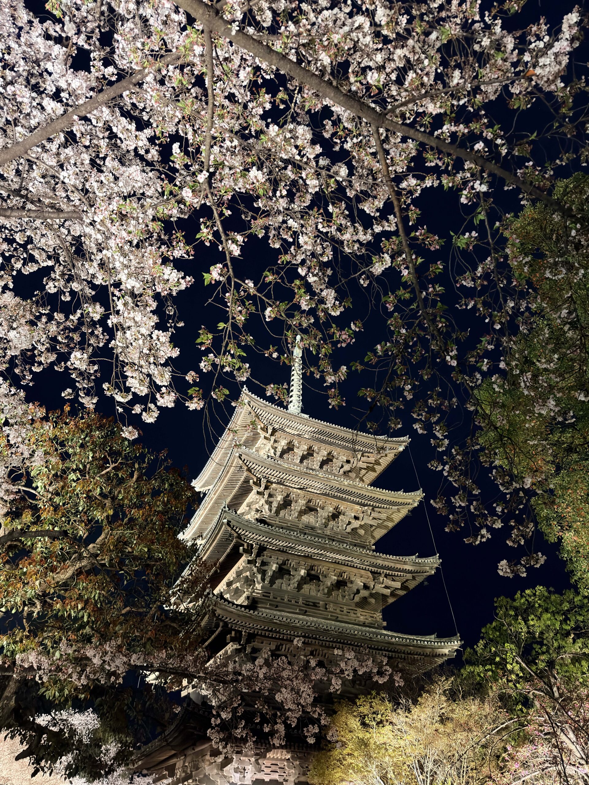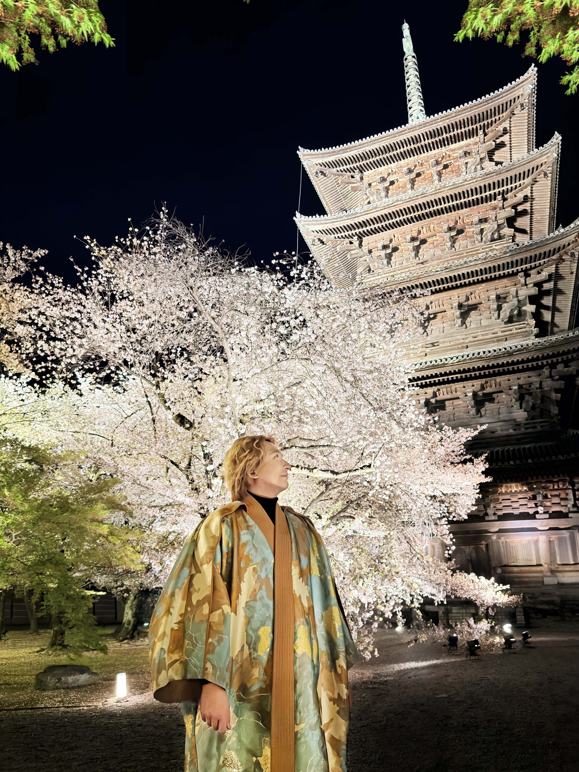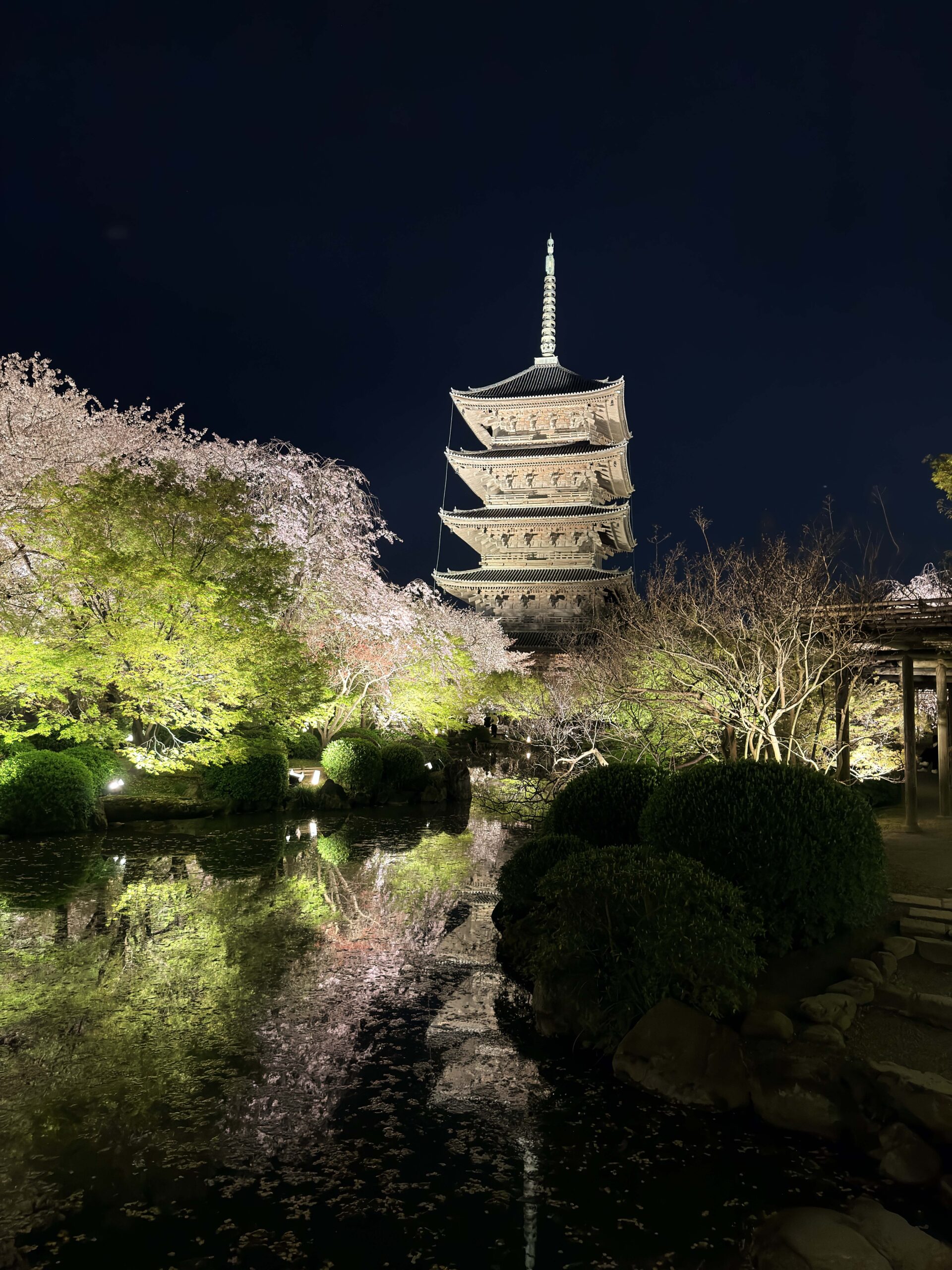 To end the journey, I headed to To-ji Temple for a special “yozakura” (night sakura) viewing. The experience was nothing short of magical. Seeing Japan’s tallest five-story pagoda illuminated against the obsidian sky, mirrored perfectly in the temple pond, is a sight I will never forget.